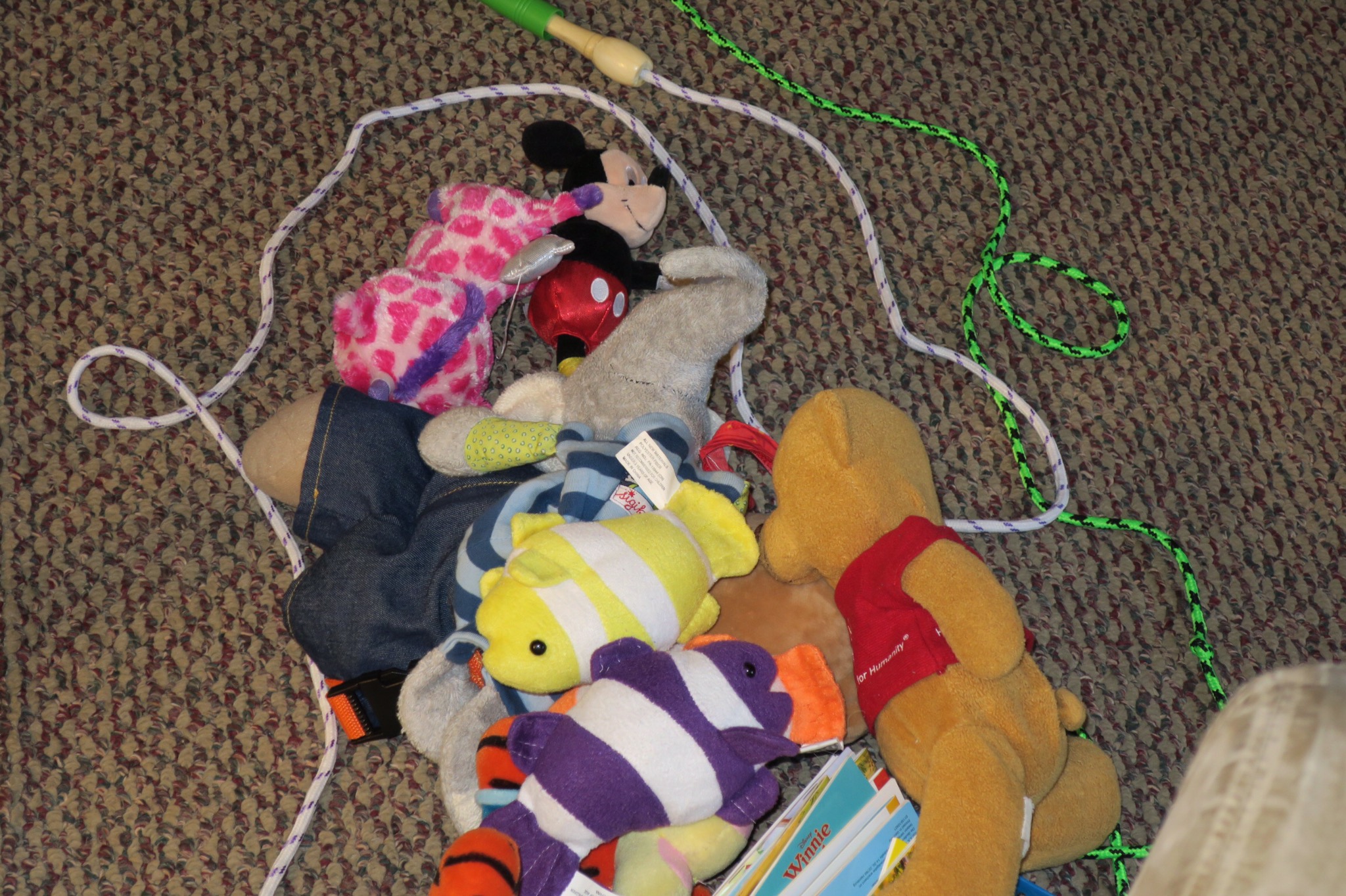 A pile of animals inside a jump rope – pretend play of circle time from preschool