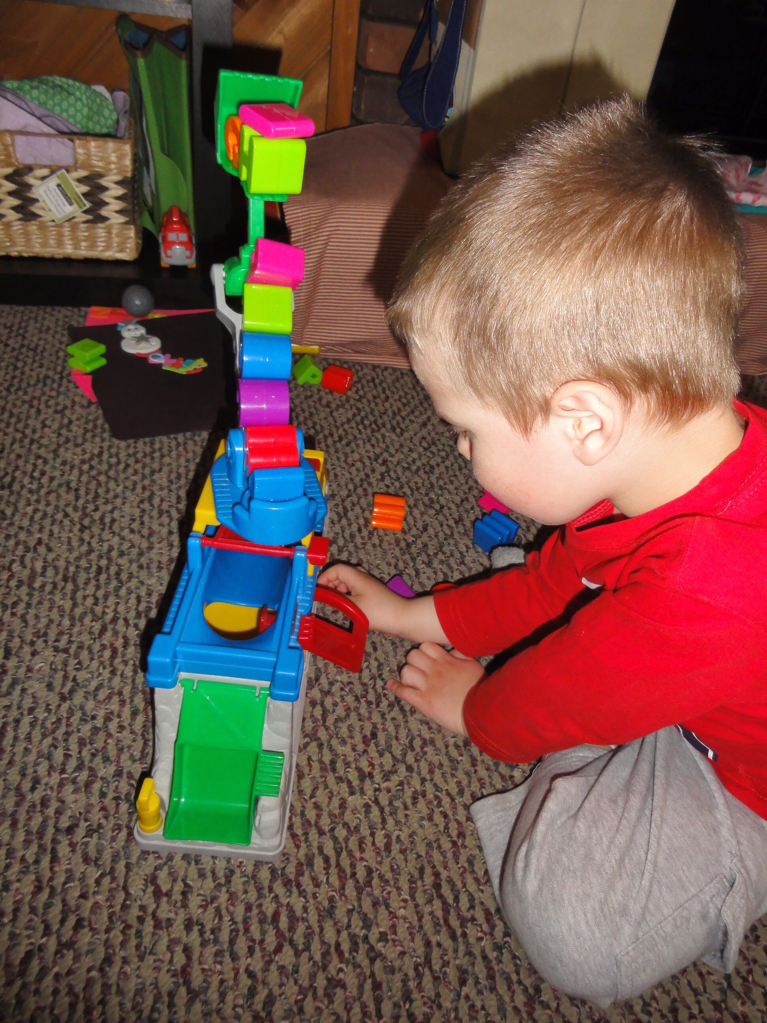 Right after my twins were born, J, then 3, started driving me crazy. He’d ask for a certain activity. I’d manage to free myself from the other two to get him set up, help him get started, and then walk away. Almost inevitably, after a couple minutes he would lose interest and wander away, looking for something else to do.