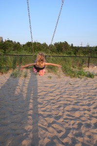 We love watching our shadows change on swing sets. The length of certain body parts, what’s visible from different directions.