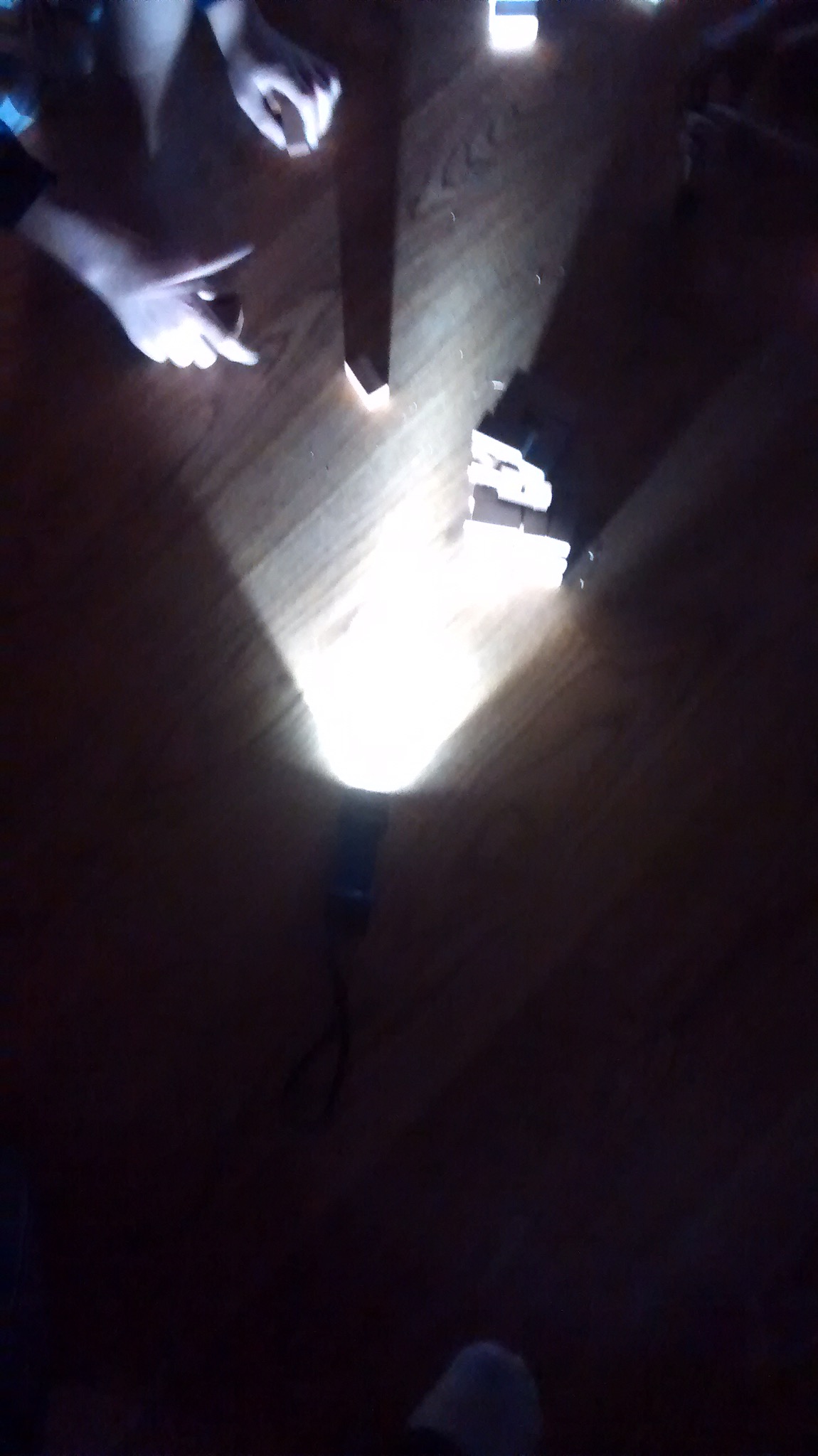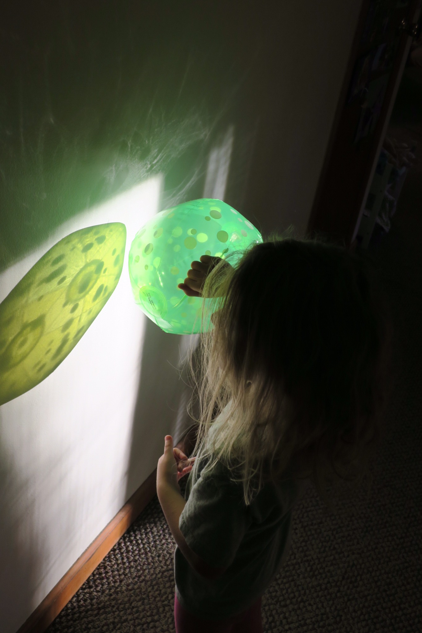 One of my daughters is obsessed with flashlights, so we set up various objects in front of the light to see what they create.