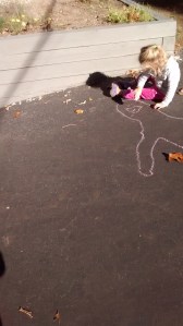 Our driveway is perfect for shadow observation. We use chalk to draw each others’ outlines (and then fill in the details) and to mark the shadows of the trees at various points during the day. We play a version of “freeze tag” where if someone steps on your shadow, you’re frozen and the “home base” is anywhere your shadow is hidden by tree shade.