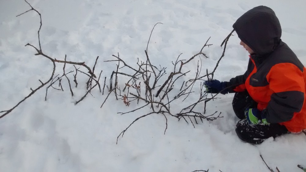 It’s called a stick forest, and it’s one of our favorite ways to play in the snow when the snow just isn’t cooperating for snowballs and snowmen.